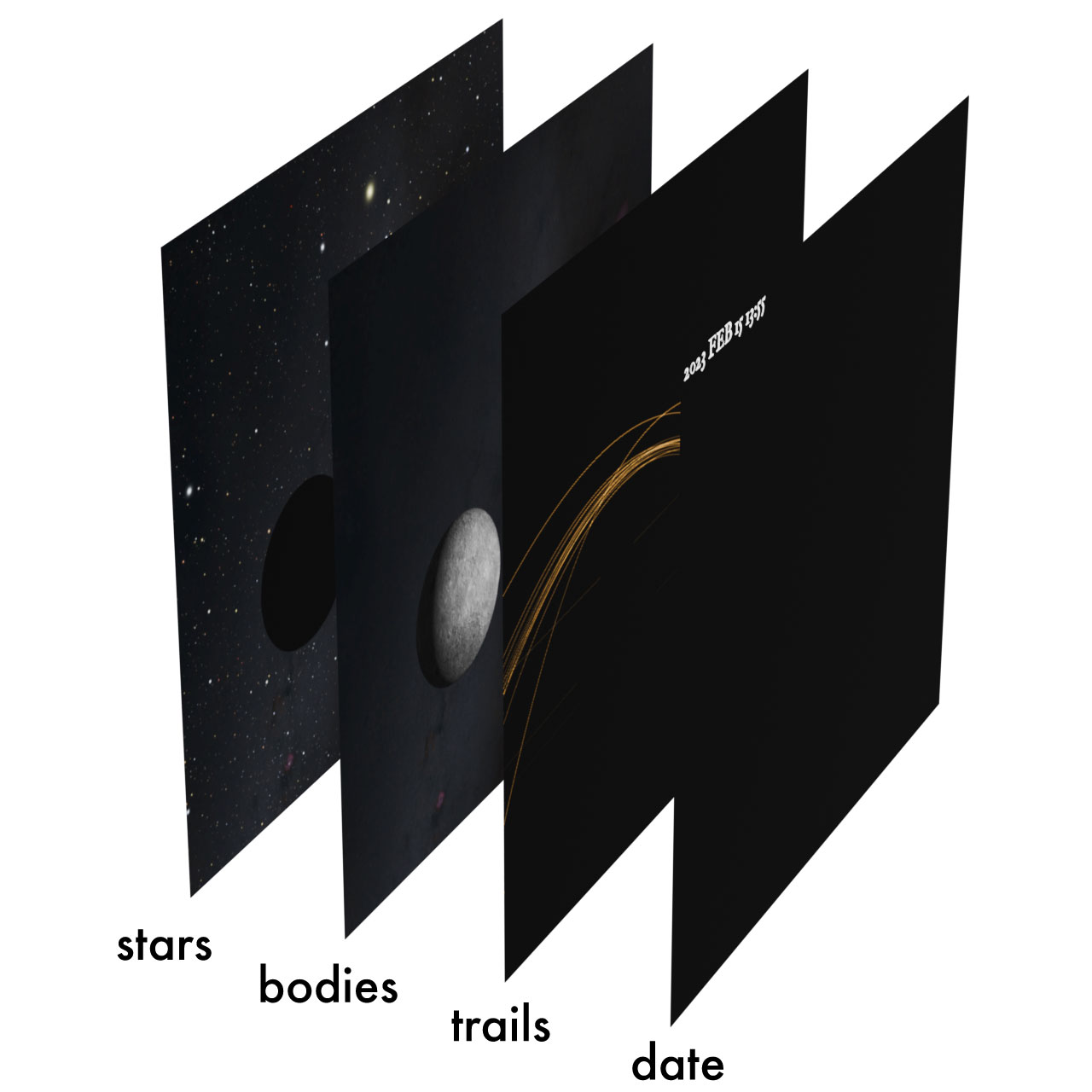 Here we have the alt/azi of Mercury in a table. The camera is then rotated to always point at the position in the sky.